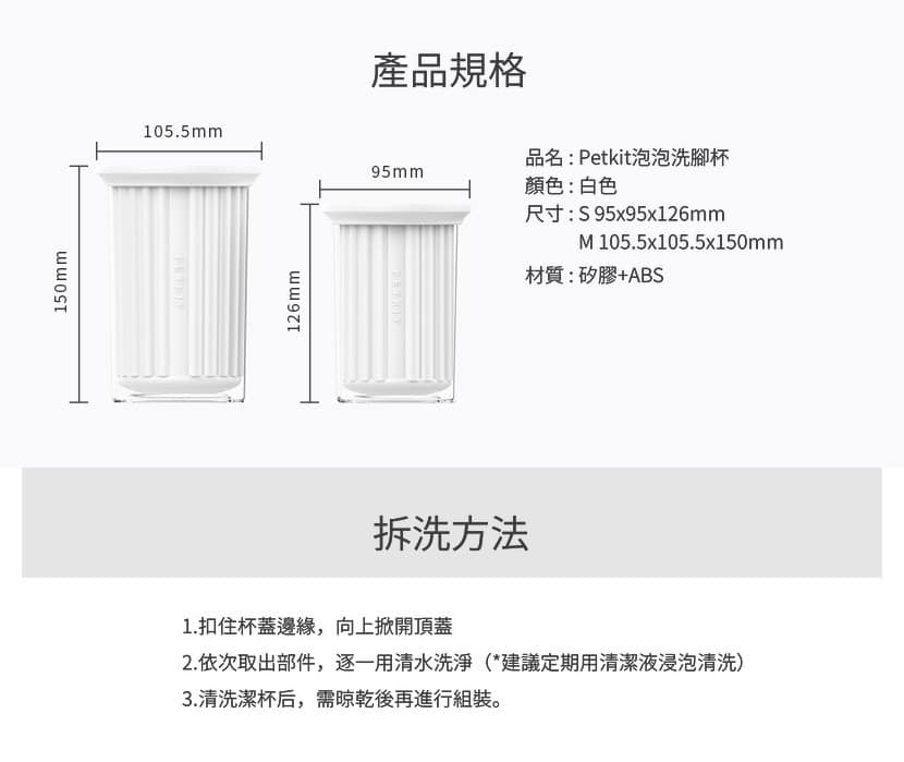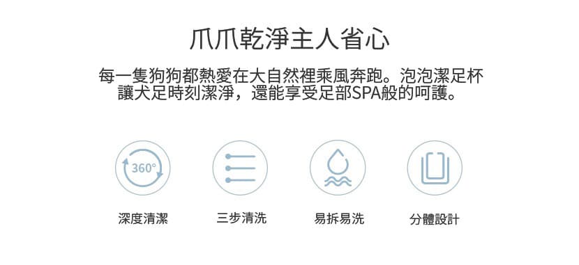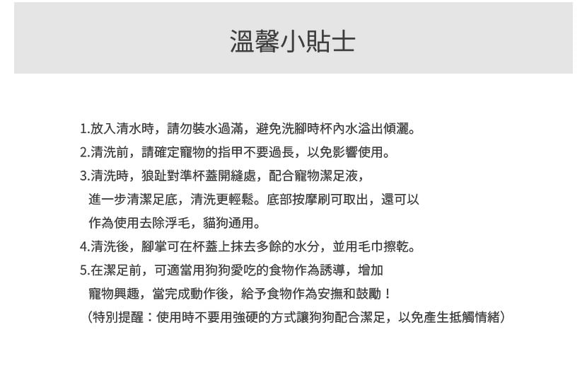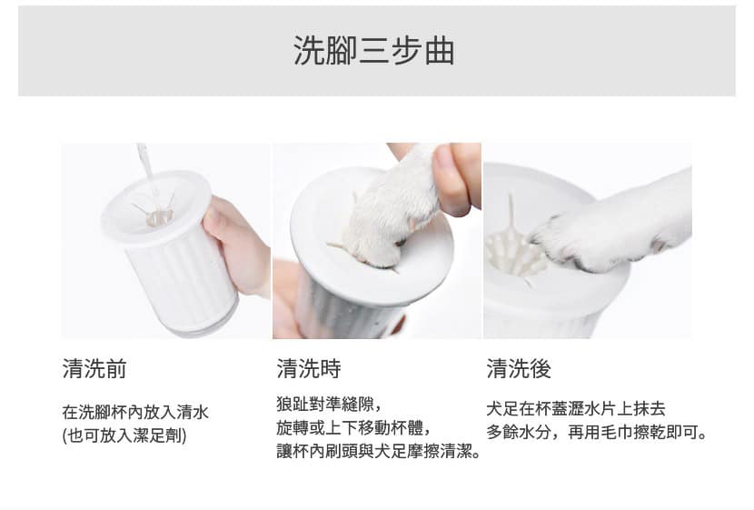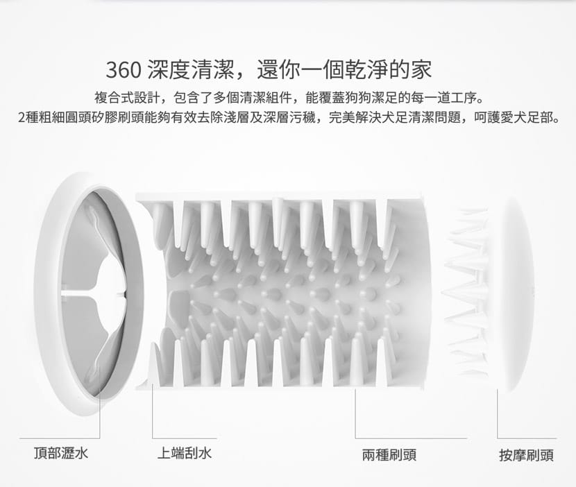 - 360° 清潔刷頭設計,可全面清潔及按摩毛孩腳掌
