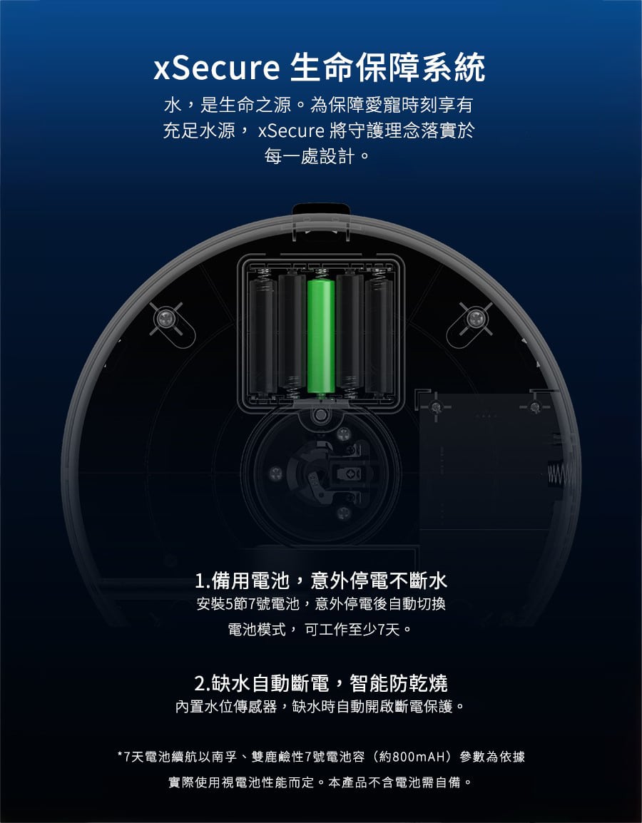 - xSecure 生命保障系統,配有後備電池及電池低電量提示,停電自動切換電池模式,可工作至少七天