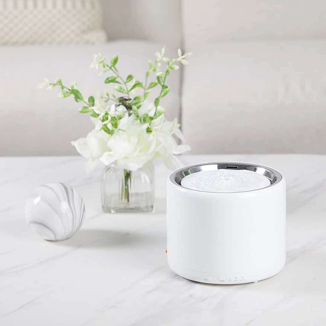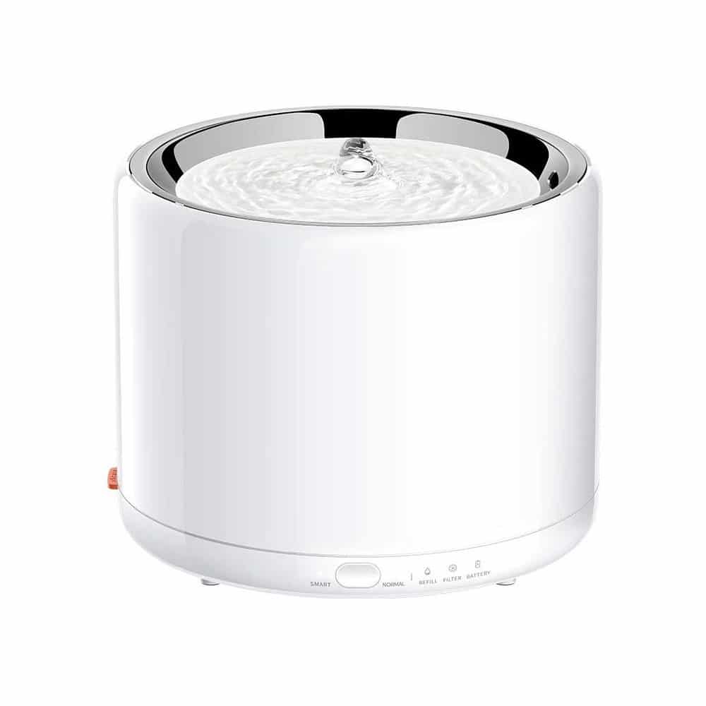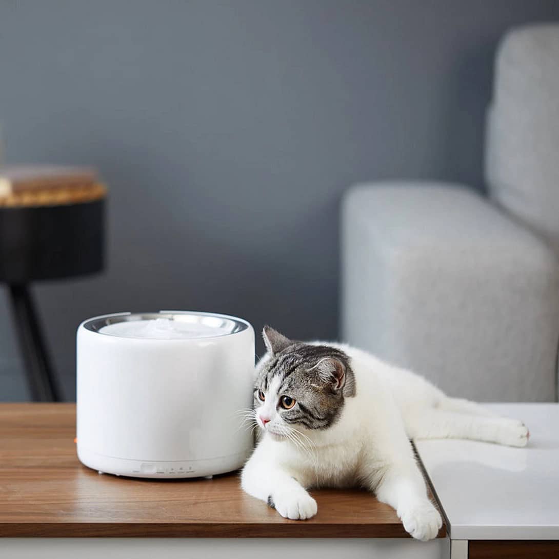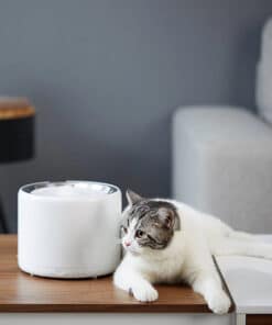 內置水位感應器,缺水時自動開啟斷電保護模式,防止水泵乾燒 - 上下分離式設計方便清洗及換水,飲水盤螺旋式鎖扣設計防止寵物損壞