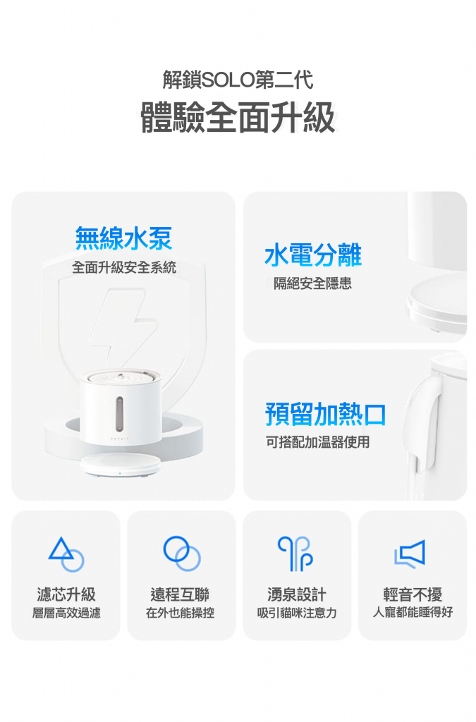 PETKIT EVERSWEET SOLO 2 無線水泵寵物智能飲水機,全球銷量 NO.1 智能飲水機品牌,無線水泵及儲水桶分離式設計,水電徹底分離,方便日常清洗