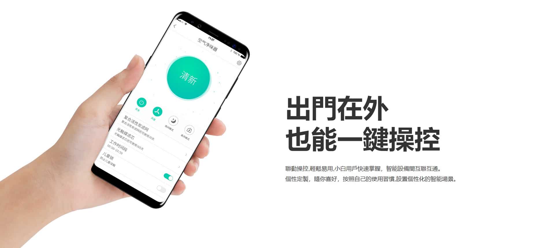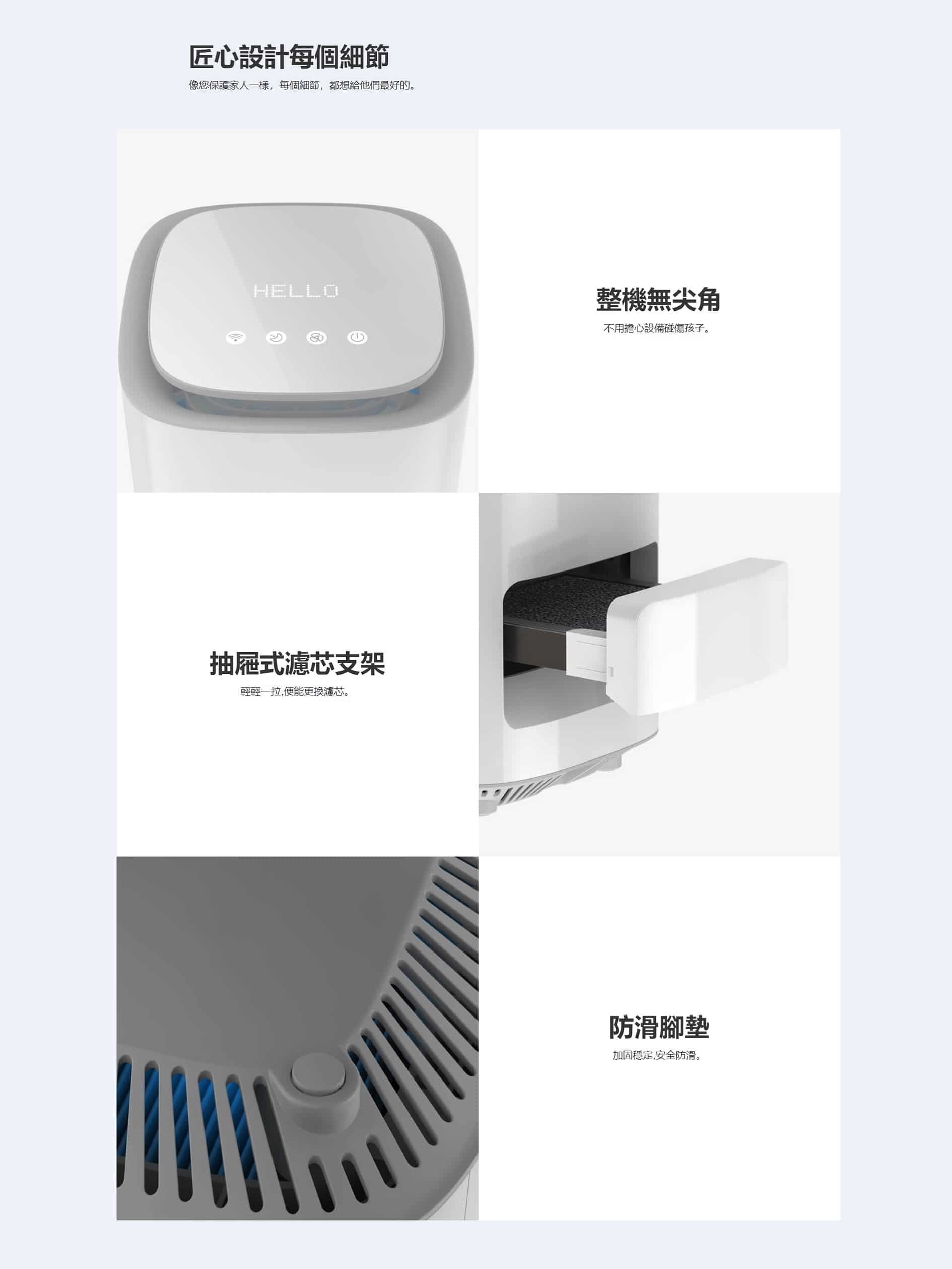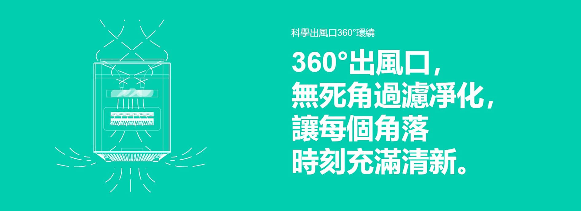 - 360° 出風口無死角過濾淨化,讓每個角落時刻充滿清新