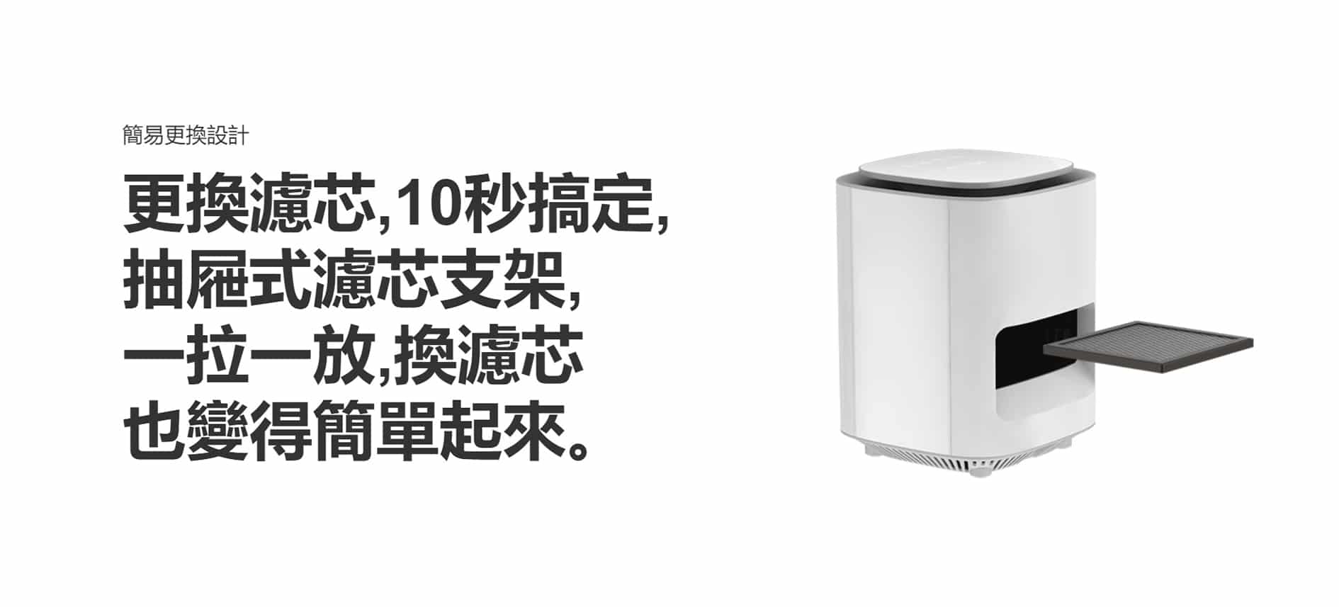- 更換濾芯 10 秒搞定,抽屜式濾芯支架,一拉一放換濾芯也變得簡單起來