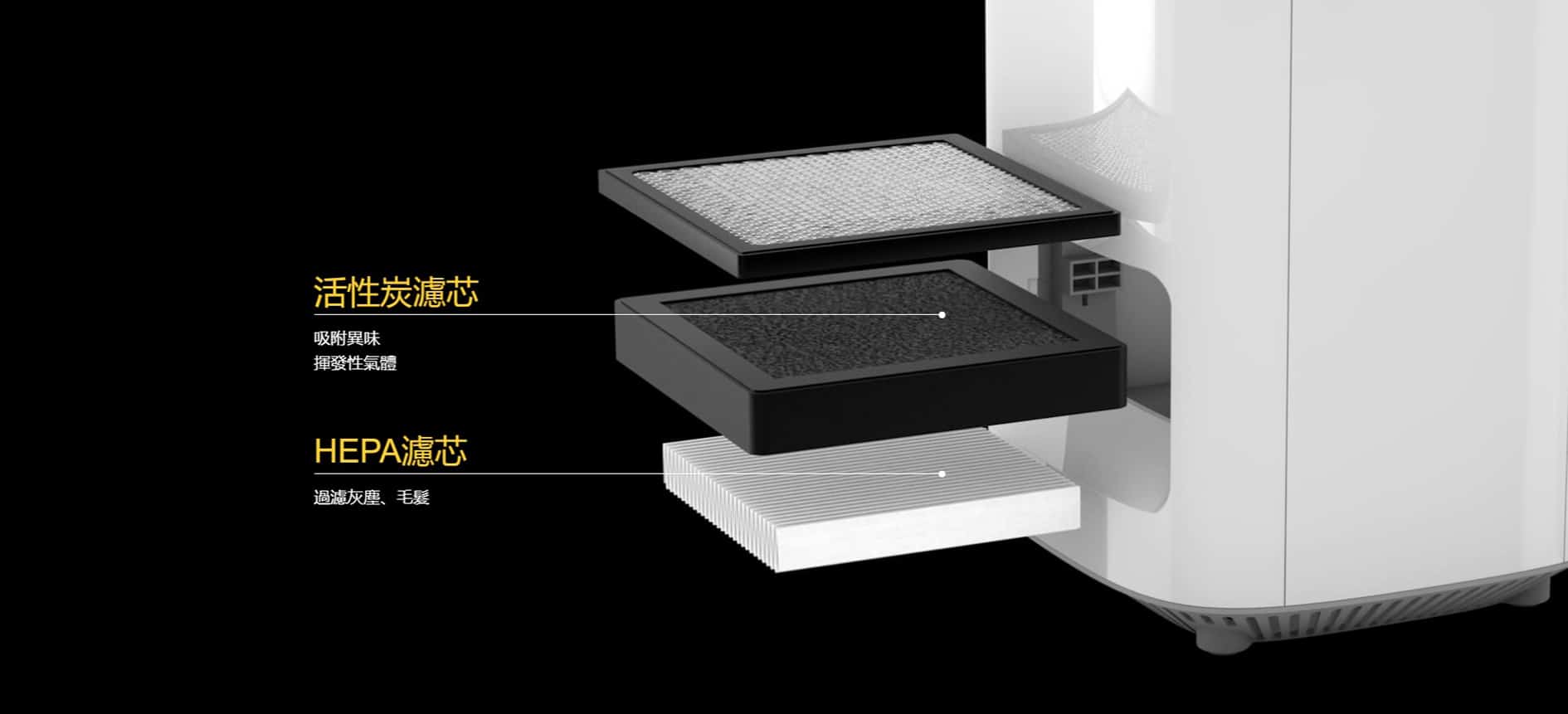 - HEPA 濾芯可長達使用 3 個月