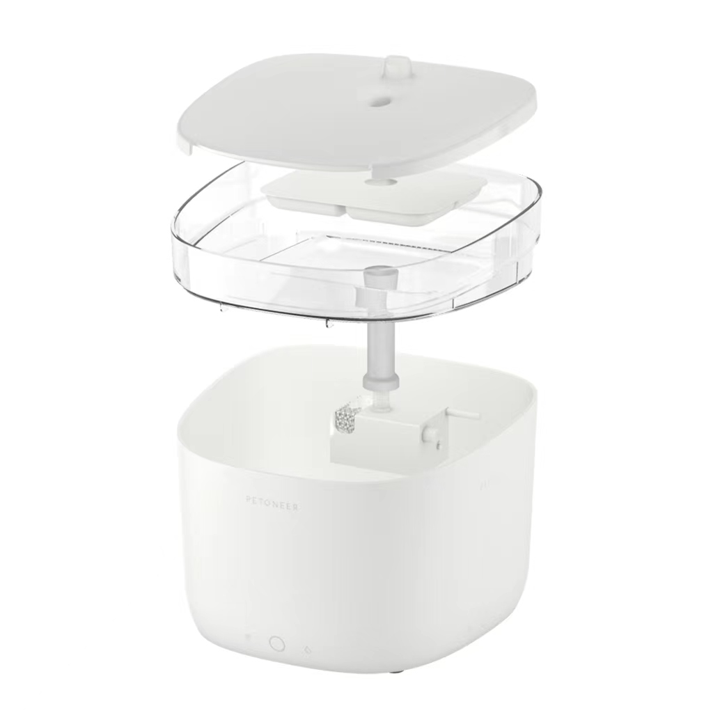 - 普通碗裝水靜置狀態時,毛髮灰塵易漂浮水面繁殖細菌,長期飲用不宜健康,PETONEER 自動飲水機 24 小時過濾可保證水源健康潔淨