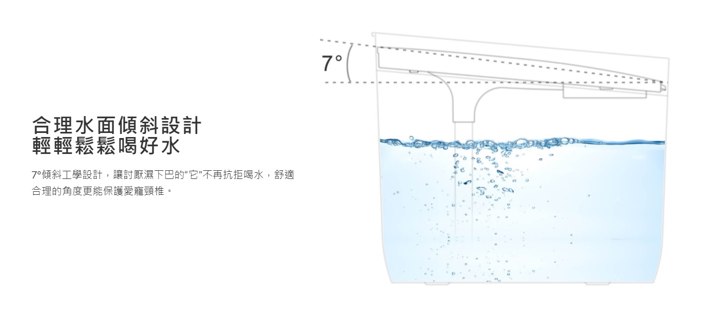 - 7° 傾斜工學設計,讓討厭濕下巴的“它”不再抗拒喝水,舒適合理的角度更能保護愛寵頸椎
