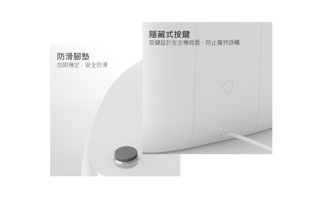 - 無需拔掉主機電源,提出儲水槽或者提起水機上蓋,即可斷電。儲水槽內部極簡設計,不留死角,清潔簡單更省時,加水更快捷