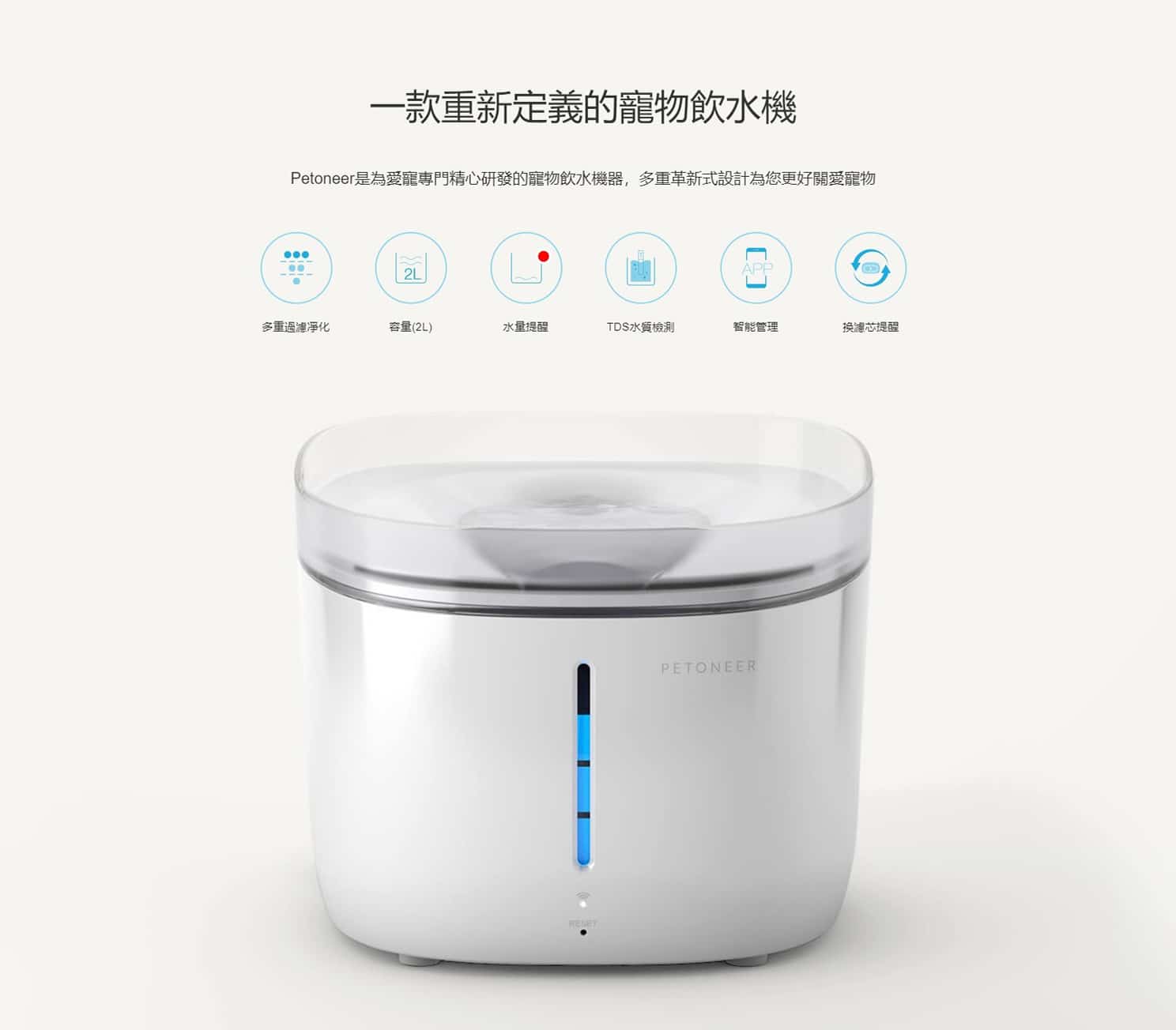 - PETONEER 是為愛寵專門精心研發的寵物飲水機器,多重革新式設計為您更好關愛寵物