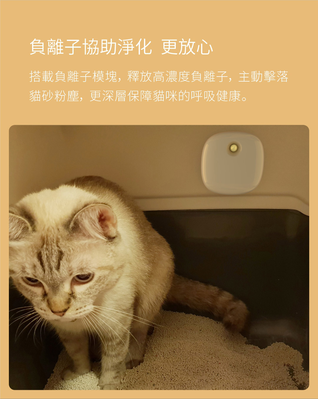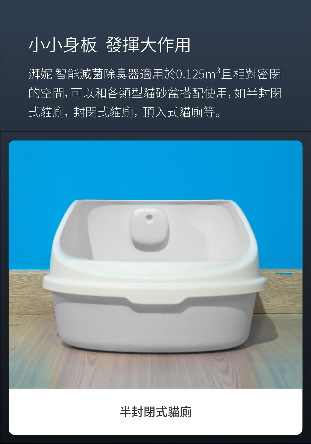 - 適用於 0.125m3 空間,可以和各類貓砂盆搭配使用,如半封閉式茅廁、封閉式貓廁、頂入式貓廁等