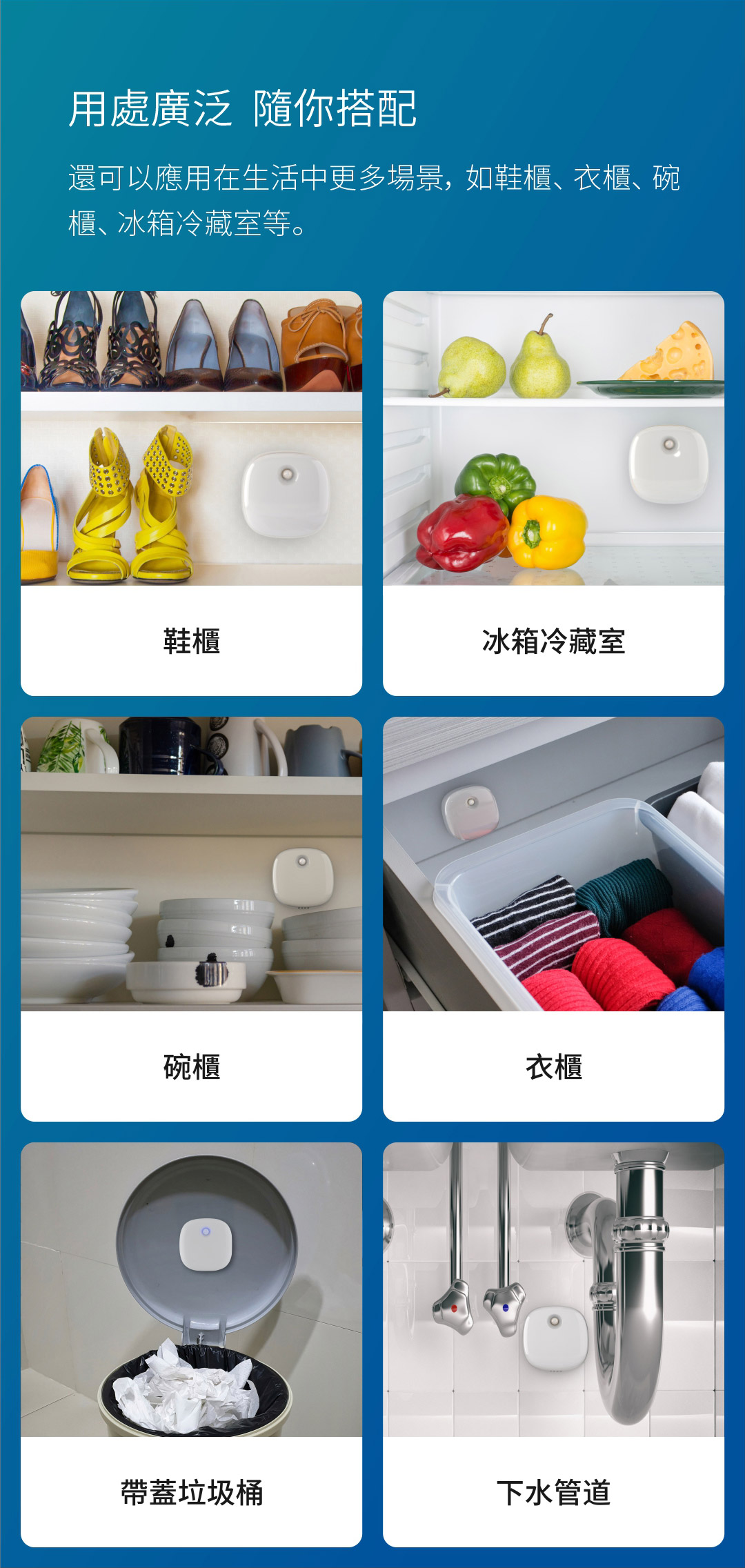 - 可以應用在生活中多種場景,如鞋櫃、衣櫃、碗櫃、雪櫃、冰箱冷藏室等