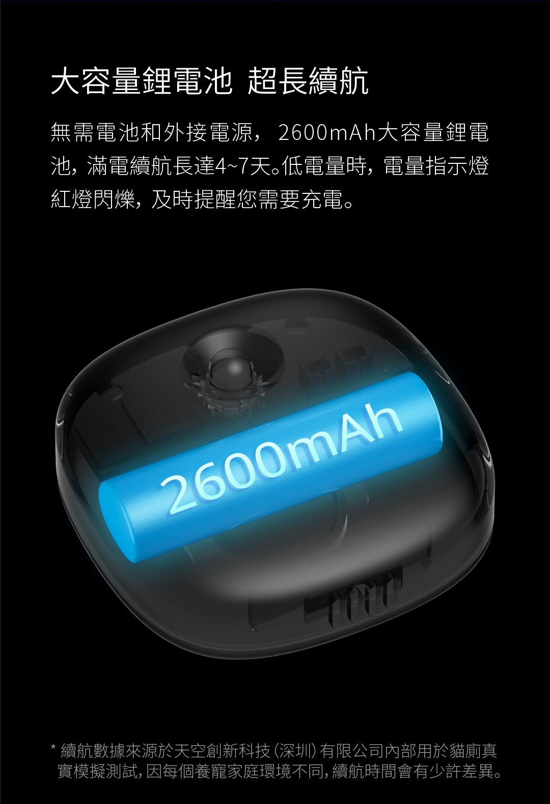 - 使用時長:約 4 – 7 天 (滿電下)