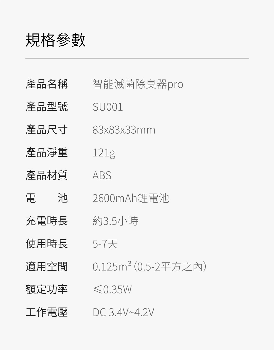 - 工作電壓:DC 3.4V~4.2V