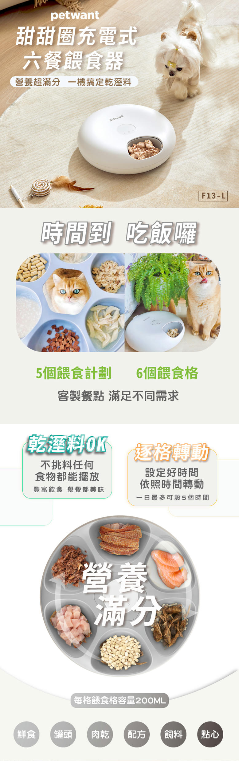 - 容量:200ml X 6 (每格可裝約 85g – 90g 糧食)