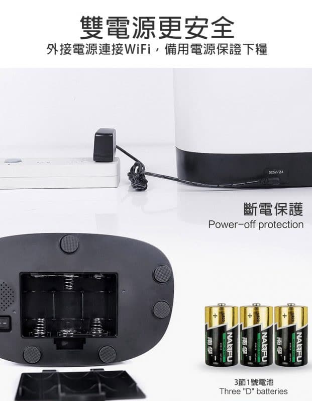 - 注意:使用電池情況下只能實現自動餵食功能