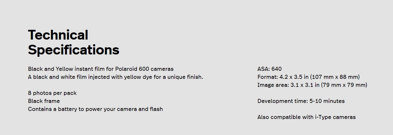 POLAROID YELLOW 600 FILM (BLACK & YELLOW DUOCHROME EDITION) 寶麗來即影即有菲林相紙 (黑黃雙色)