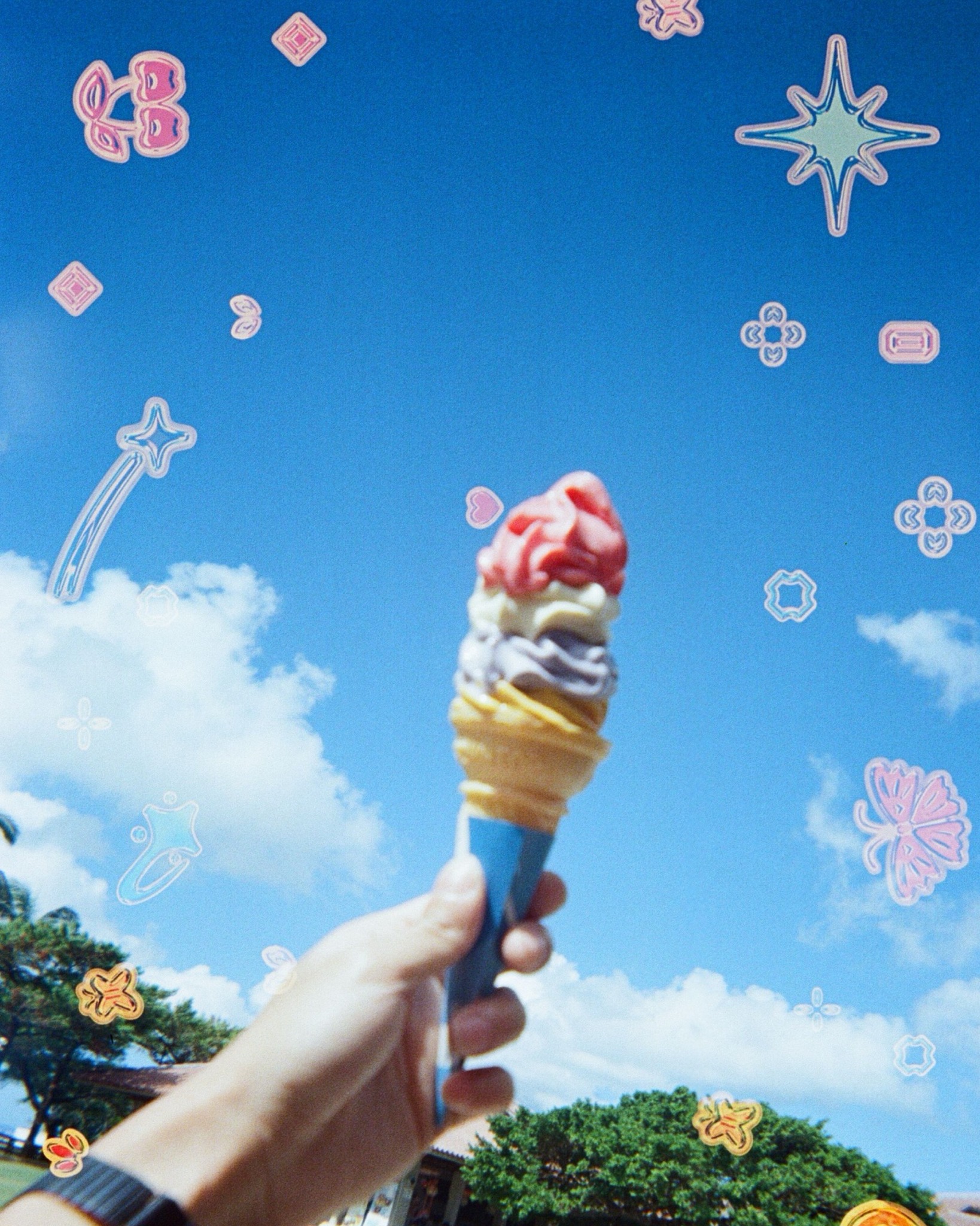 - 搭配時髦預先曝光的寶石圖案和閃爍的相機外觀
