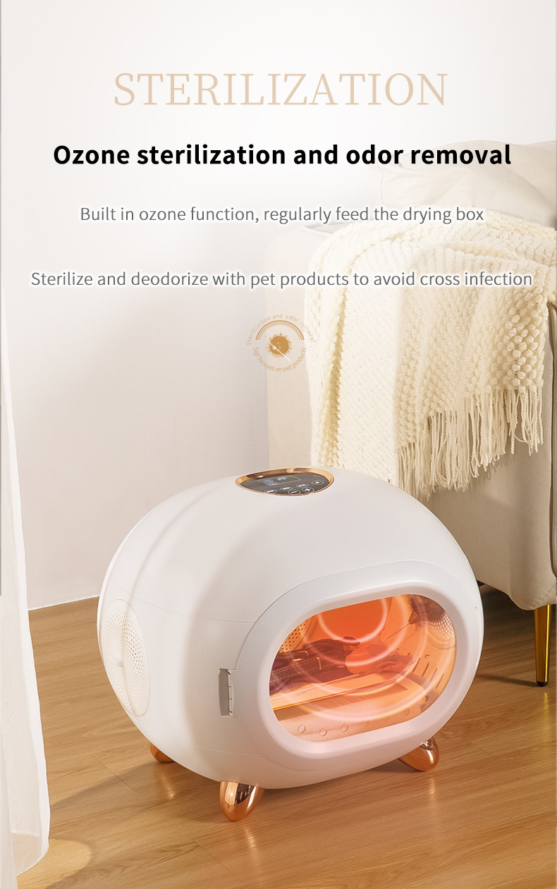 - 搭配臭氧殺菌除異味功能,內置臭氧模組,定期給烘乾箱和寵物用品殺菌去味,避免交叉感染