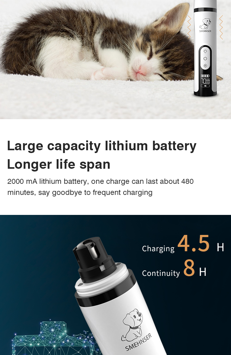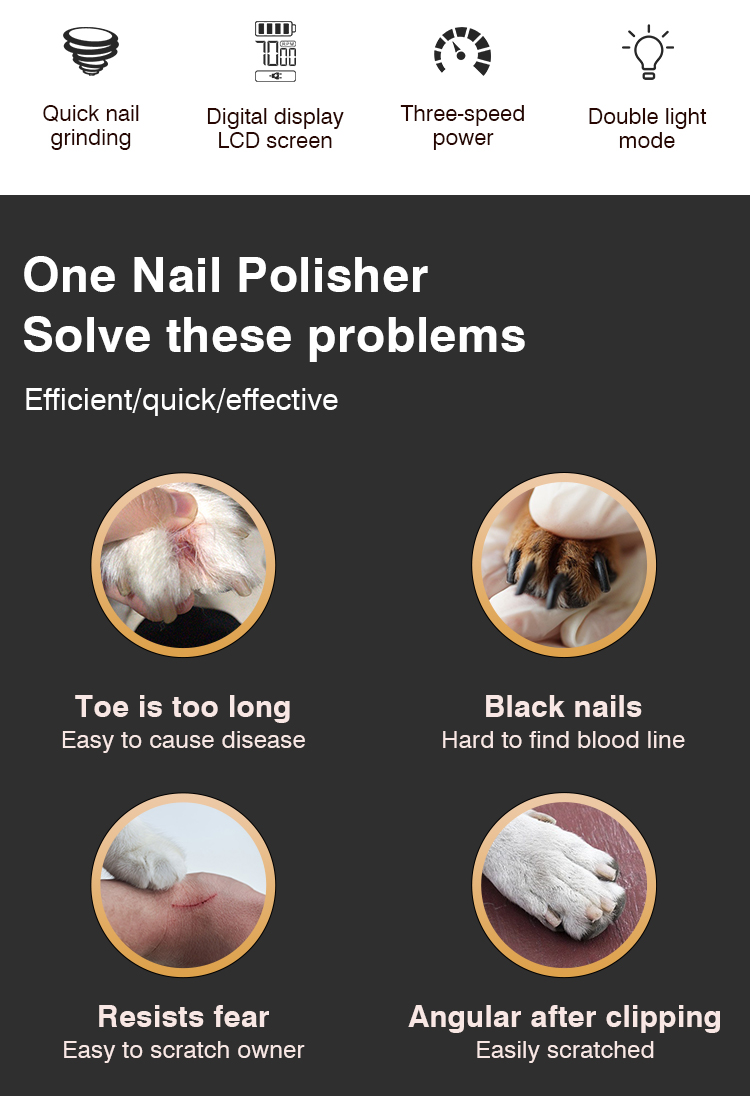 - 為什麼要定期給寵物磨甲?我們日常生活中都會遇到的苦惱問題;寵物抓破傢俱;指甲太長容易導致疾病;使用指甲鉗時寵物抗拒不配合剪不動或剪傷血線;手動磨甲太慢;寵物指甲太尖利被寵物抓傷。這款 M5寵物電動磨甲器可以輕鬆應對這些問題