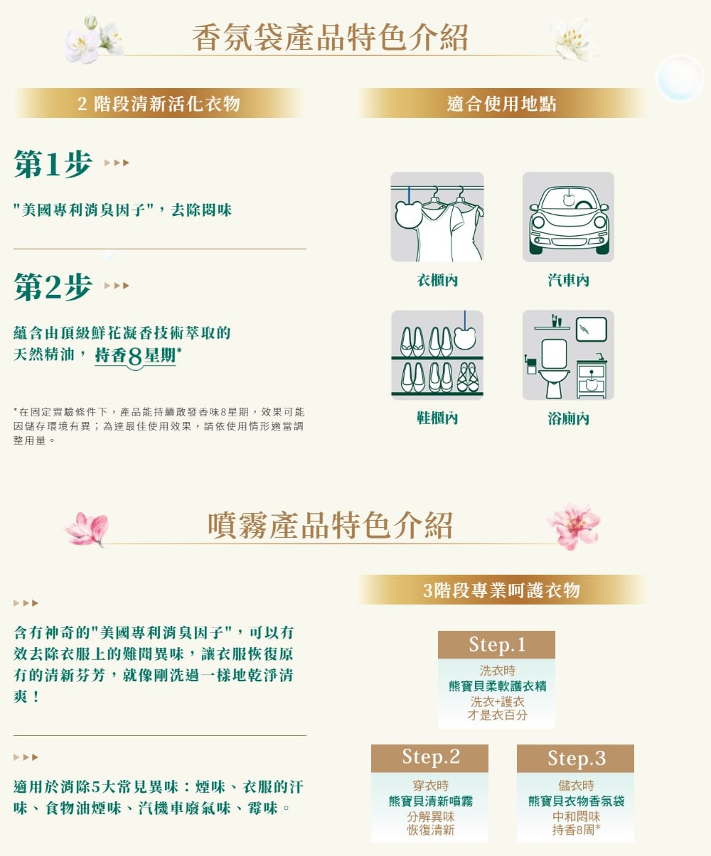 - 含有神奇的 “美國專利消臭因子”,可以有效去除衣服上的難聞異味,讓衣服恢復原有的清新芬芳,就像剛洗過一樣地乾淨清爽