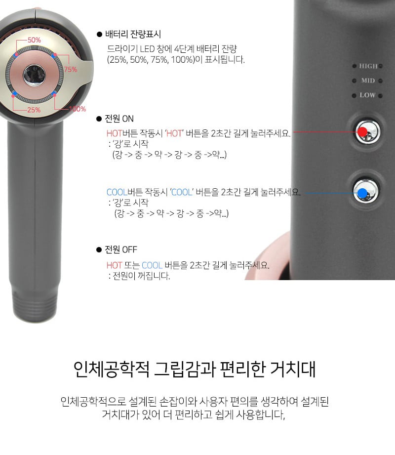 - 冷熱交替模式,調節 LOW / MID / HIGH 溫度