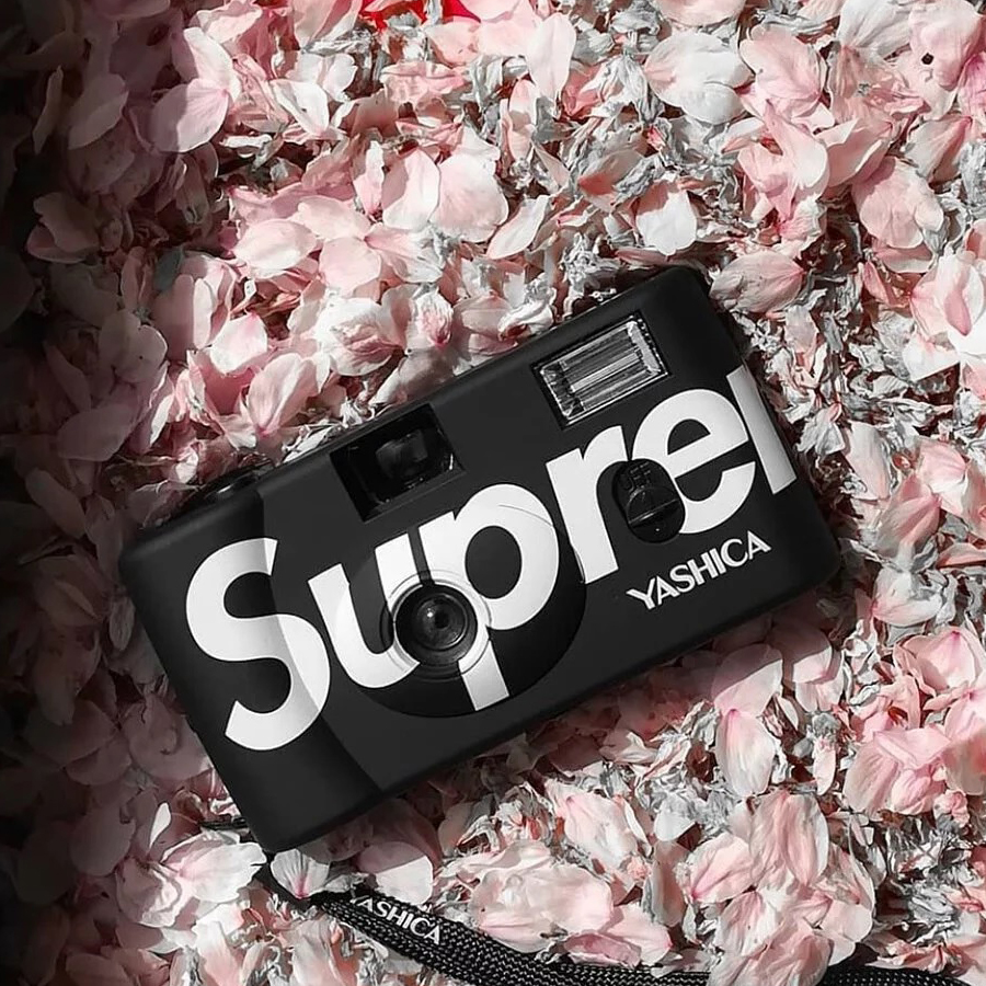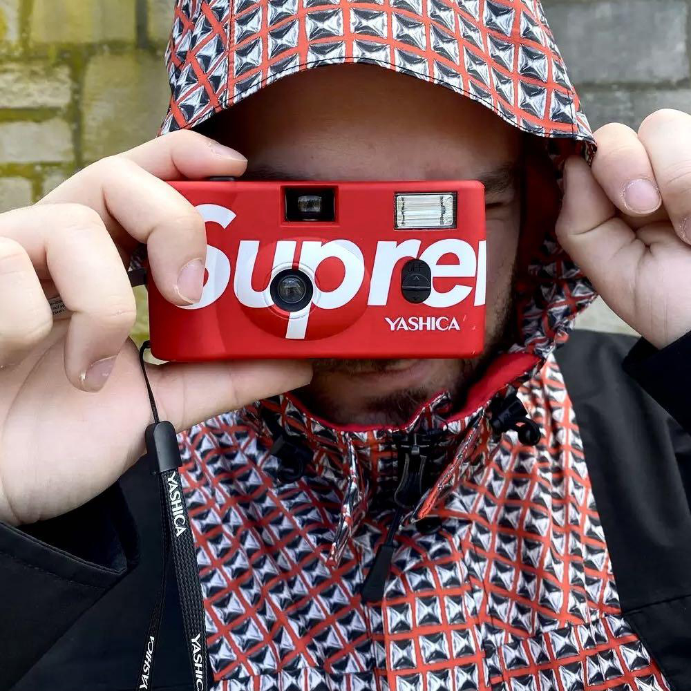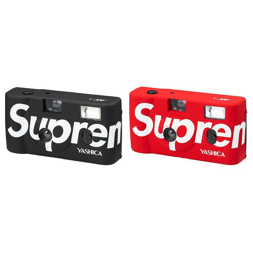 The Supreme Yashica MF-1 Camera was one of the most anticipated accessories of Spring/Summer 2021. The 35mm Supreme film camera features a built-in flash with a fixed 31mm lens as well as a logo across the front of the camera.