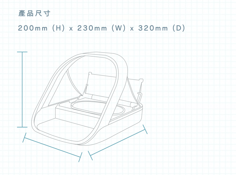- 產品:200mm (H) x 230mm (W) x 320mm (D)
