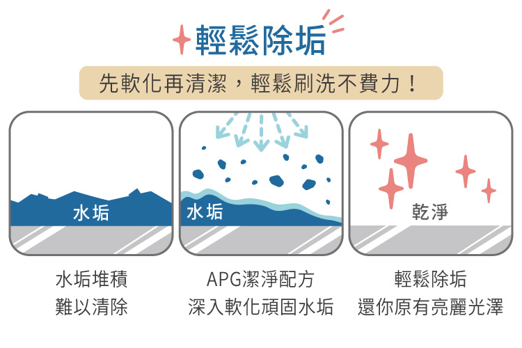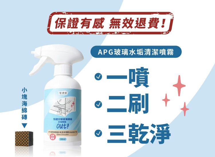 宅清淨的 APG 速效玻璃水垢清潔噴霧,先軟化後清潔 3 分鐘快速反應,輕鬆清除