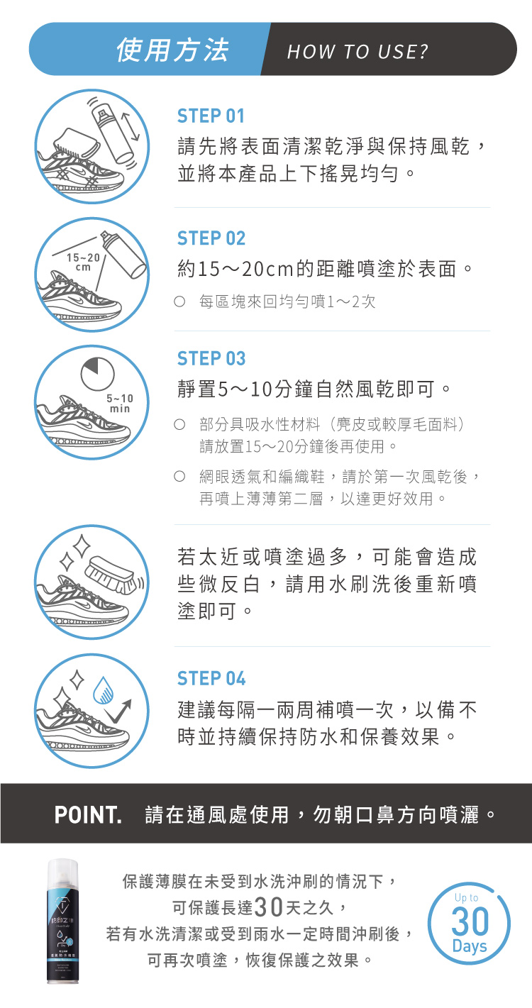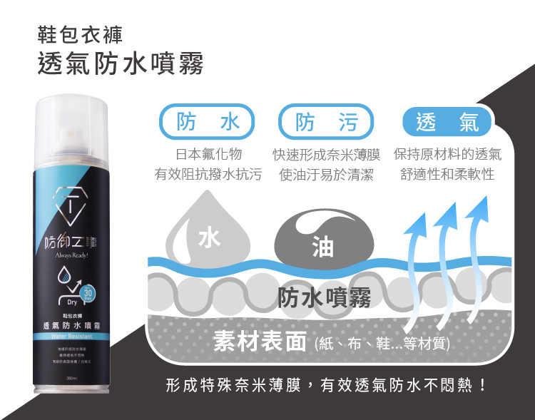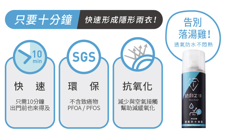 - 防御工事透氣防水噴霧 10 分鐘快速防水,出門前噴也來得及