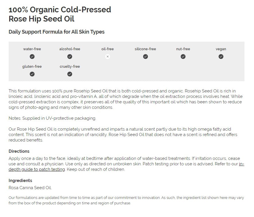THE ORDINARY 100% 冷榨有機玫瑰果油 30ML